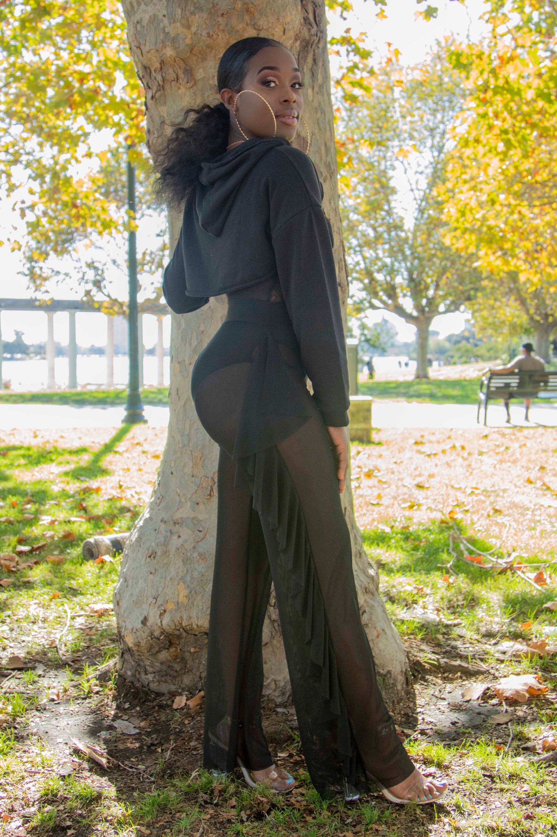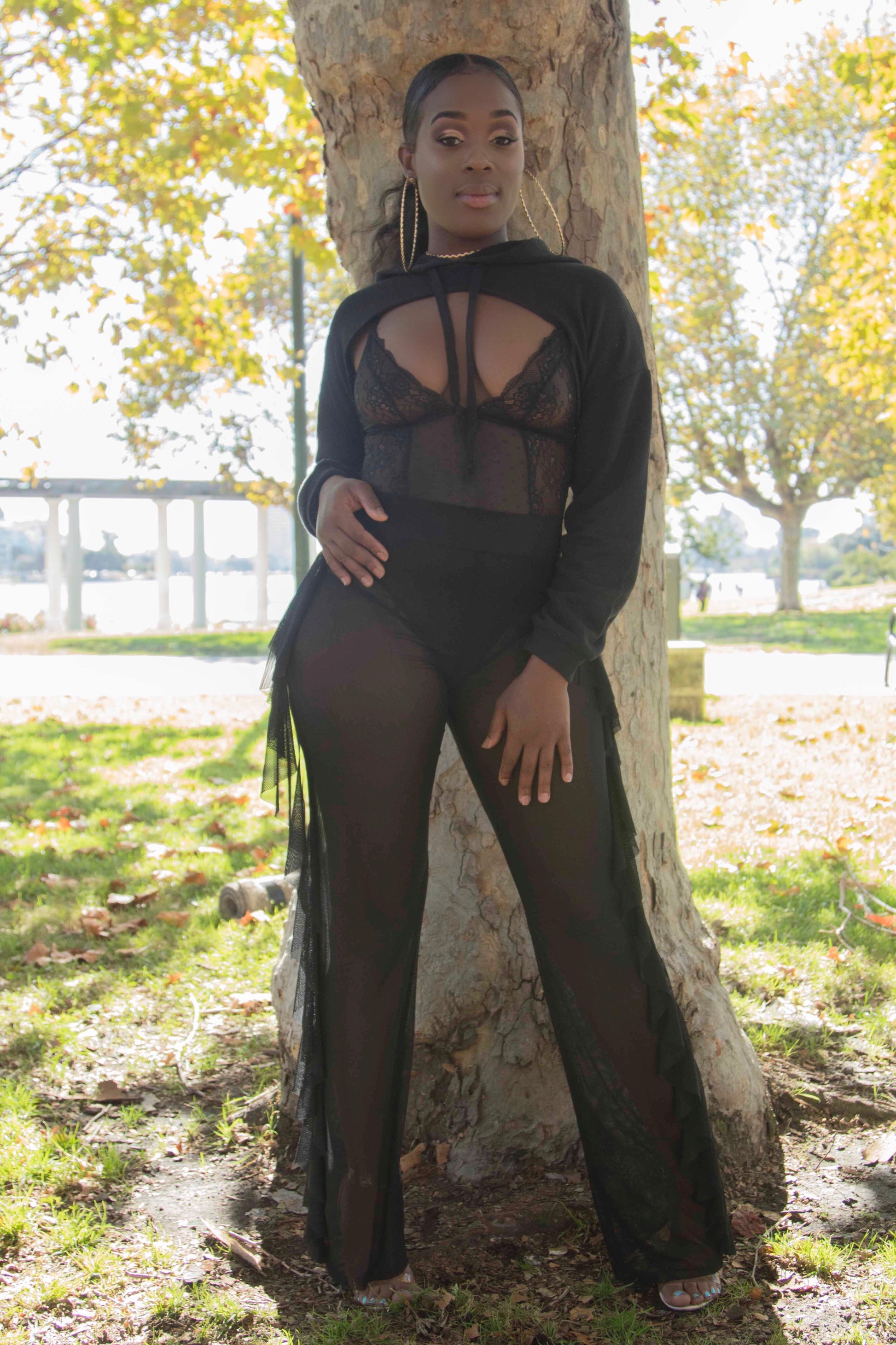 Warm up any outfit with these open bust crop top hoodies! Solid, long sleeve, hooded with drawstring . Available in Blush Pink and Black.